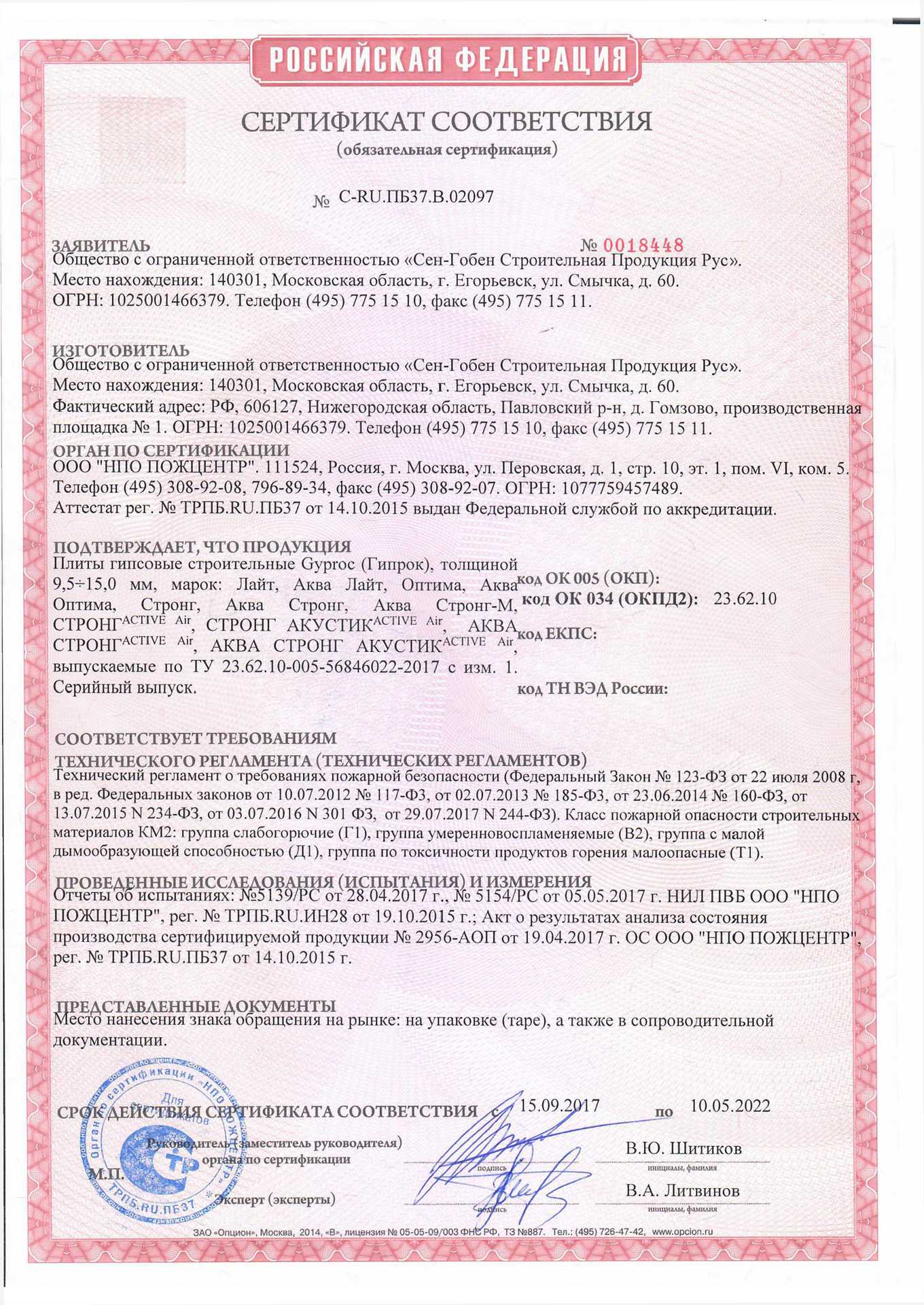 Предназначен для устройства легких межкомнатных перегородок, подвесных потолков, облицовки стен, в зданиях и помещениях с сухим и нормальным влажностными режимами. Состоит из гипсового сердечника, оклеенного с двух сторон картоном. Боковые (продольные) кромки листа также оклеены картоном и имеют утоненную форму. Согласно ГОСТ 6266-97 листы гипсокартона могут иметь допуски по ширине и длине до 5 мм в меньшую сторону.